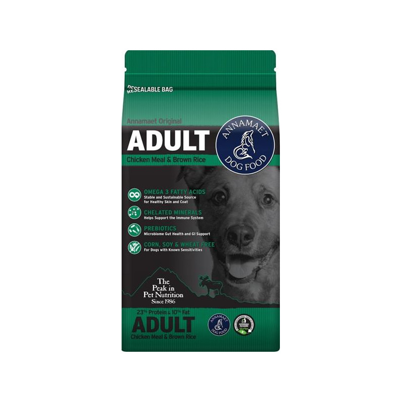 Annamaet Adult je receptura vytvořená pro starší psy nebo psy s pomalejším metabolismem. Velmi oblíbená je také ve větších chovech psů.