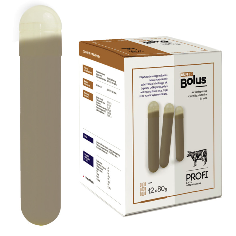 Bolus Buffer je přípravek, který obnovuje rovnováhu prostředí v bachoru zvýšením a stabilizací pH. Buffer Bolus zajišťuje rychlý návrat chuti k jídlu a lepší příjem krmiva, díky čemuž se zvyšuje dojivost.
