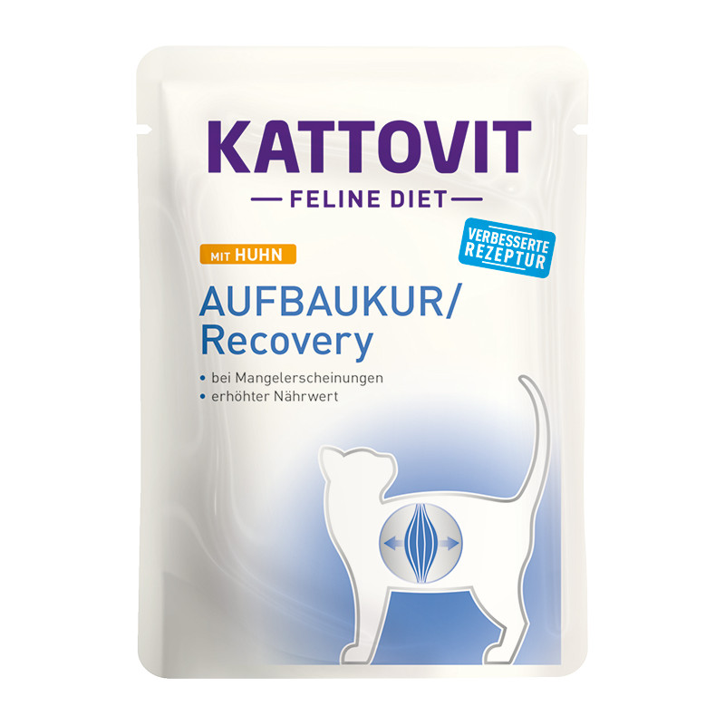Dietetické mokré krmivo bylo speciálně vyvinuto pro kočky se zvýšenou potřebou energie a živin a vyznačuje se vyváženou recepturou. Obsahuje snadno stravitelné suroviny (např. kuřecí), které přispívají k optimálnímu příjmu živin. Kromě toho vyniká krmivo pro kočky Kattovit extra lahodnou chutí, díky čemuž je dobře akceptováno také mnoha chlupáči se sníženou chutí k jídlu. Jemným kouskům v delikátní omáčce odolá málokterá kočka. Rekonvalescenční formule bohatá na energii a živiny: stvořeno pro zásobování oslabených koček se zvýšenou potřebou energie vším potřebným, receptura obzvláště bohatá na živiny. Dobrá stravitelnost: obsahuje snadno stravitelné suroviny, např. kuřecí. Extra chutné: pro dobrou akceptaci u koček se sníženou chutí k jídlu, pro vybíravé kočky. Lahodná konzistence: jemné kousky s kuřecím v omáčce pro snadnou konzumaci."