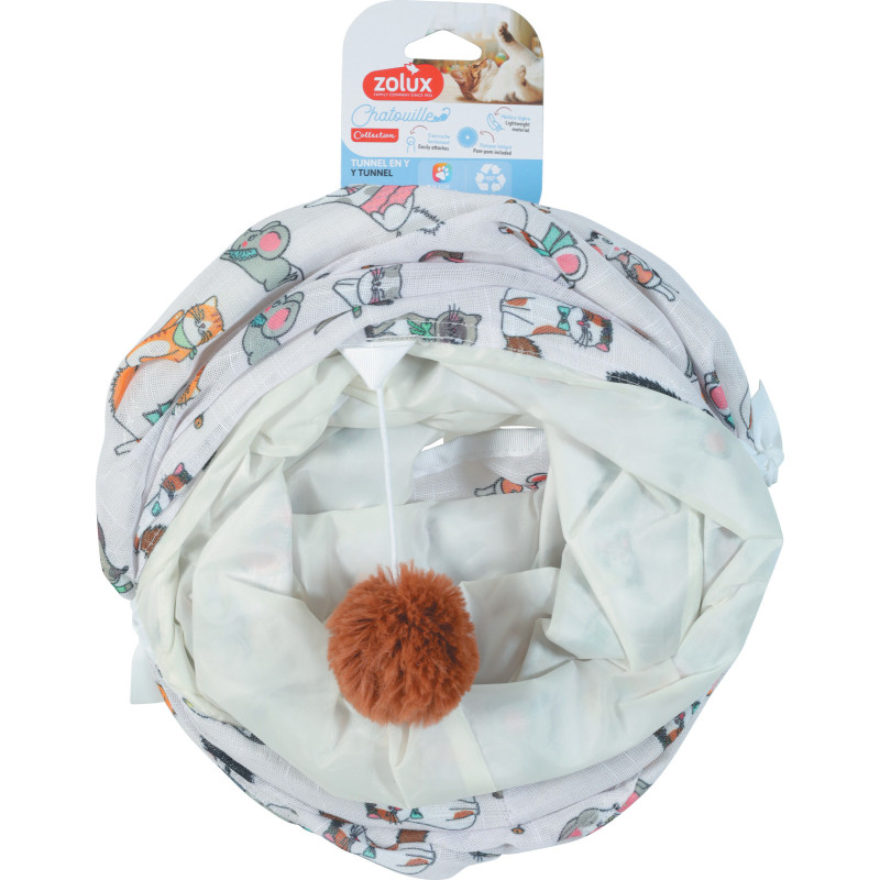 Dopřejte své kočce hodiny zábavy a objevování s tímto lehce přenosným tunelem pro kočky, vyrobeným z velmi lehké a odolné tkaniny. Tunel podporuje přirozenou zvídavost, hravost i pohyb – ideální pro schovávání, prohánění nebo nenápadné přepadení kořisti. Součástí Y-tunelu je všitá hračka, která při pohybu kočky láká k dalšímu hraní a podněcuje lovecké instinkty a zároveň se dá snadno složit či propojit s dalšími tunely. Tento systém nabízí mnoho možností kombinací a rozšíření, které můžete přizpůsobit prostoru i temperamentu své kočky.