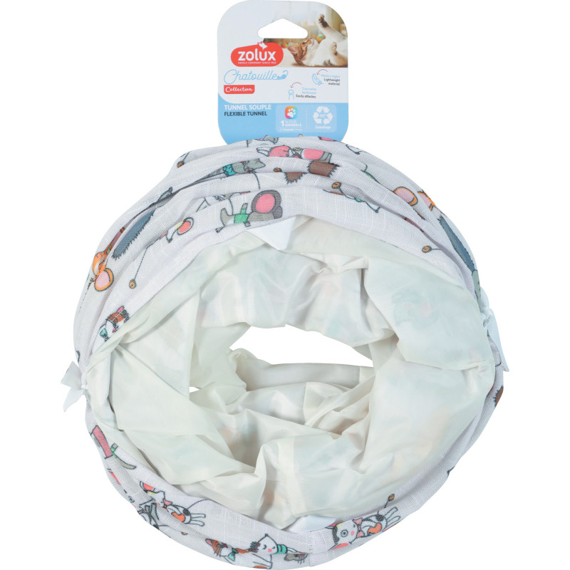 Dopřejte své kočce hodiny zábavy a objevování s tímto lehce přenosným tunelem pro kočky, vyrobeným z velmi lehké a odolné tkaniny. Tunel podporuje přirozenou zvídavost, hravost i pohyb – ideální pro schovávání, prohánění nebo nenápadné přepadení kořisti. Díky pružné konstrukci tunel drží tvar v elegantním oblouku a zároveň se dá snadno složit či propojit s dalšími tunely, včetně oblíbeného tunelu ve tvaru Y. Tento systém nabízí mnoho možností kombinací a rozšíření, které můžete přizpůsobit prostoru i temperamentu své kočky.