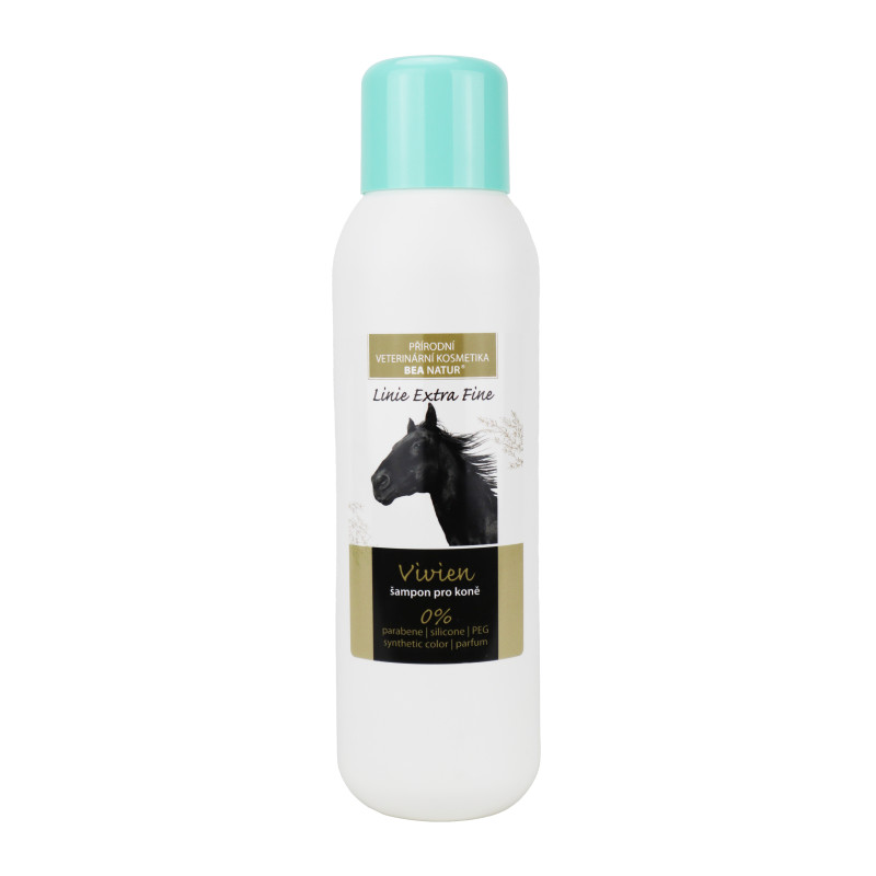 VIVIEN - linie extra fine je velmi jemný šampon nové generace pro koně. Nedráždí, nevysušuje, nenarušuje přirozenou tukovou vrstvu pokožky, pH ideal. Šampon možno ředit vodou až do poměru 1:4. Složení je obohaceno kondicionérem pro lesk srsti. Při nízké skladovací teplotě může šampon zhoustnout a získat mléčné zabarvení. Tento stav není na závadu. Při pokojové teplotě se obnoví původní konzistence a barva bez vlivu na kvalitu šamponu.