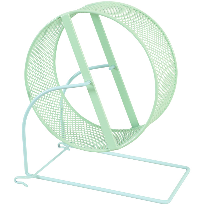 Kovový běhací kolotoč pro malé křečky (např. Křečík džungarský nebo Roborovského) s bezpečnou a stabilní oporou