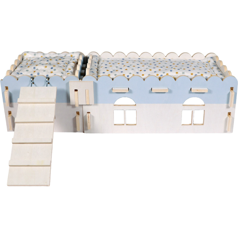 Vyrobeno z topolového dřeva s certifikátem FSC®. Toto měkké dřevo je ideální pro drobné savce, protože je netoxické, bez pryskyřice a bez zápachu, což je dobré pro zdraví zvířat a jejich citlivý čich. Certifikovaný původ dřeva navíc zaručuje odpovědné lesní hospodaření, takže výrobek je etický a šetrný k životnímu prostředí.