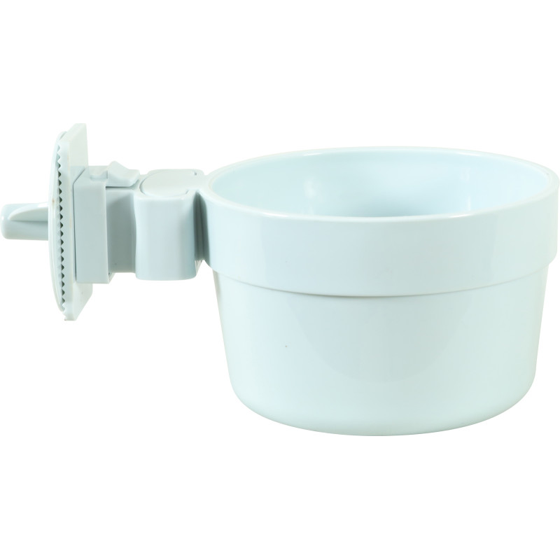Díky jednoduchému a spolehlivému upevňovacímu systému lze krmítko snadno připevnit ke kleci, kde pevně drží na svém místě. Mírně vyvýšené provedení pomáhá zabránit znečištění krmiva a přispívá k udržení čisté podestýlky. Krmítko je odnímatelné, což umožňuje pohodlné doplňování krmiva i rychlé a snadné čištění. Praktický design usnadňuje péči o zvíře a zajišťuje hygienické podmínky při krmení.