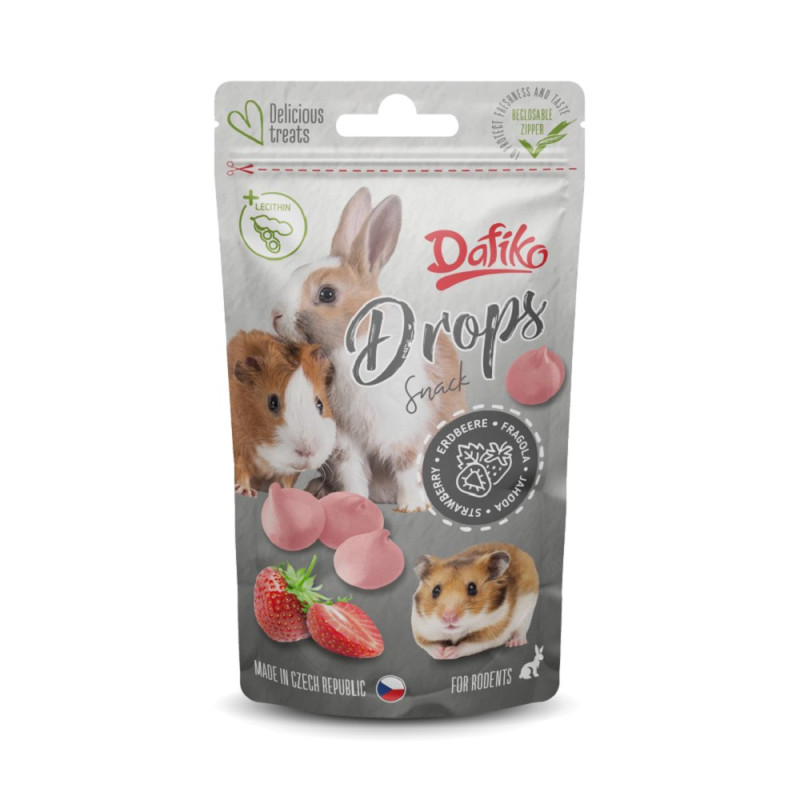 Lahodné dropsy s jahodovou příchutí určené jako chutná odměna nebo zpestření běžné denní krmné dávky hlodavců. Díky měkké konzistenci a výrazné chuti jsou vhodné pro příležitostné podávání jako pamlsek.