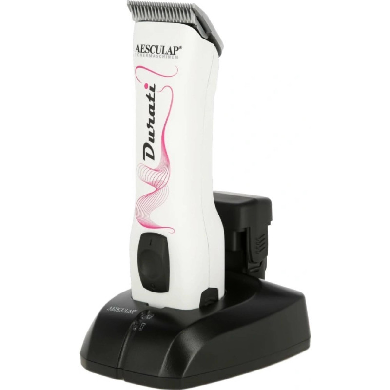 Výkonný, tichý, spolehlivý a odolný stříhací strojek Aesculap Durati ProWhite na psy a skot, vybaven čepelovým systémem SnapOn – nacvaknutí.