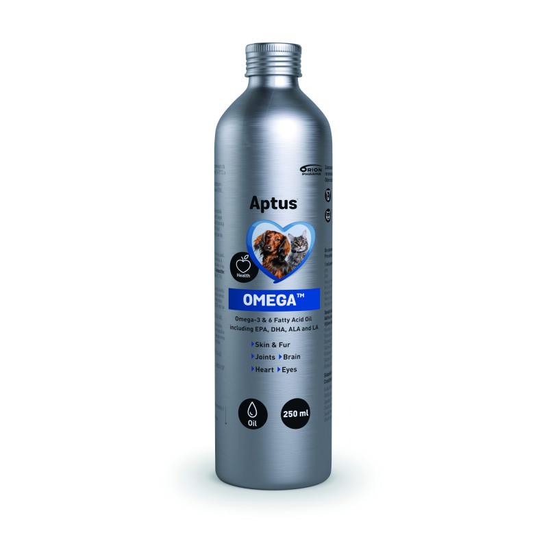 Řepkový olej (83 %), rybí tuk (15 %), pupalkový olej (1,7 %). Vitamin A (3a672a) 125 IU/ml, vitamin D3 (3a671) 40 IU/ml, vitamin E 3a700) 2.5 IU/ml, biotin (3a880) 0,2 µg/ml. V 1 ml: Omega-3 192 mg, z toho EPA 51 mg, DHA 36 mg, ALA 90 mg. Omega-6 189 mg, z toho LA (Linoleic acid) 180 mg.