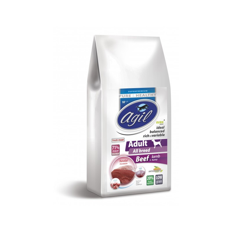 Kompletní superpremiové krmivo pro dospělé psy velkých plemen, s hovězím masem, jehněčím a tuňákem.