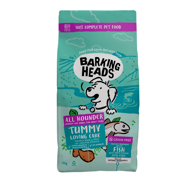 50 % ryby (29 % čerstvě připravených bílých ryb, 15 % sušené ryby, 4 % lososový olej, 2 % masová šťáva z lososa), batáty (26 %), brambory, hrách (11 %), vojtěška, lněné semínko, minerály, produkty z kvasinek (1000 mg/kg), extrakt z kořene čekanky (fruktooligosacharidy 1000 mg/kg), mořské řasy, sušená mrkev (500 mg/kg), směs bylin (máta peprná, rozmarýn, oregano a tymián 500 mg/kg), beta glukany