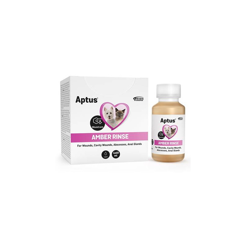 Aptus Amber Rinse je vodný roztok norské smrkové pryskyřice vyráběný ve Finsku, který podporuje přirozené procesy hojení ran: