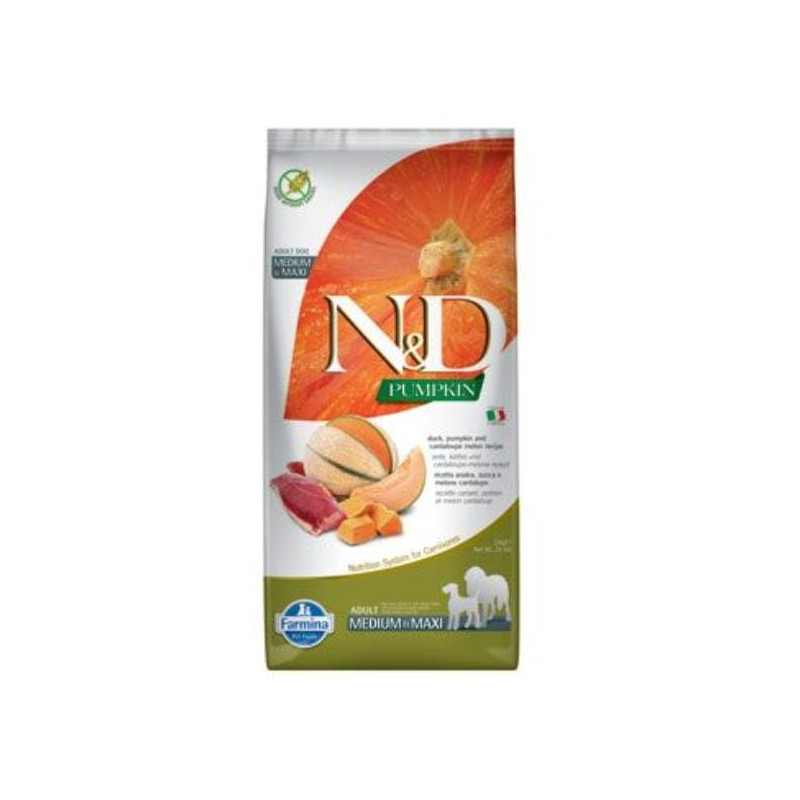 Kachna, dýně a kantalupský meloun. Kompletní krmivo pro dospělé psy.