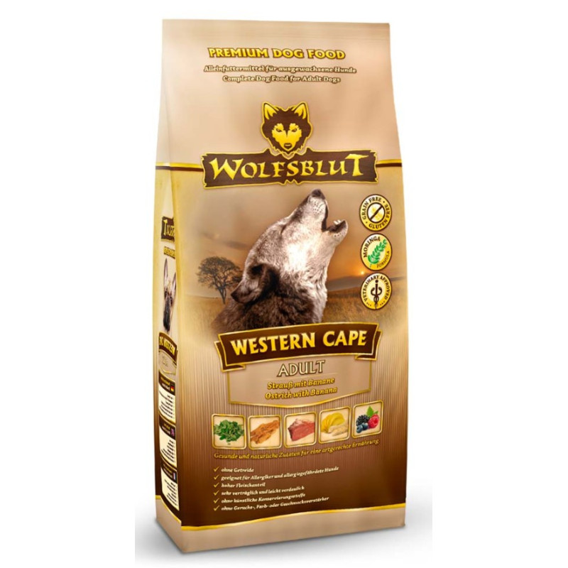 Vlci loví svou kořist od Skalistých hor Severní Ameriky, arktické tundry, hor a lesů Evropy až po pouště a stepi střední Asie. To jim dodává maso a vnitřnosti bohaté na živiny, ale také zeleninu, ovoce, bobule, kořeny a bylinky z obsahu žaludku kořisti. Obilí zde není zahrnuto. Vlk tak přijímá potřebné vitamíny, minerály, stopové prvky, enzymy a druhotné rostlinné látky. Vzhledem k tomu, že vlk je předkem všech psů, naše suché krmivo pro psy Wolfsblut je založeno na přirozených stravovacích návycích vlka. Obsahuje hodně masa v kombinaci se superpotravinami, které obsahují hodnotné ingredience – stejně jako v přírodě, bez jakýchkoliv obilovin. Náš výběr výjimečných druhů masa a superpotravin bohatých na živiny vychází z vlčích biotopů a jejich pestré stravy. Wolfsblut nabízí každému psovi druhově vhodnou a originální stravu a díky rozmanitosti odrůd si každý najde něco, co snese. Receptura suchého krmiva WESTERN CAPE kombinuje výživu vlků s nejnovějšími vědeckými poznatky o správné výživě psů.
