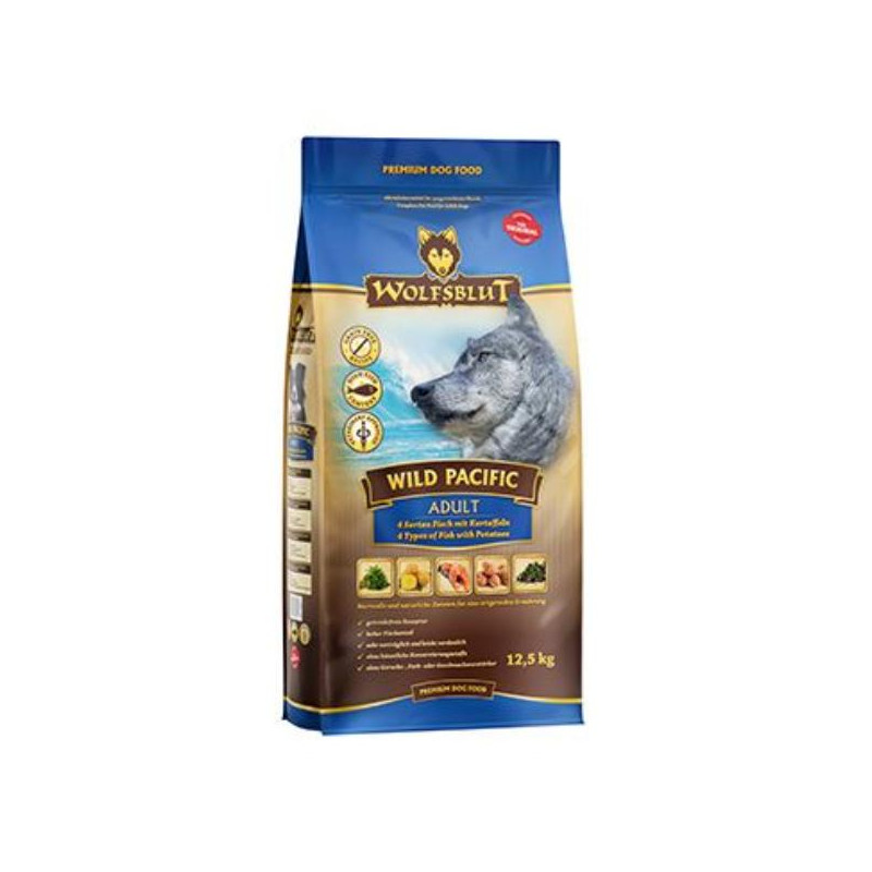 Ve Skalistých horách Severní Ameriky, v arktické tundře, v horách a lesích Evropy až po pouště a stepi Střední Asie loví vlci svou kořist. To jim dodává maso a vnitřnosti bohaté na živiny, ale také zeleninu, ovoce, bobule, kořeny a bylinky z obsahu žaludku kořisti. Obilí zde není zahrnuto. Vlk tak přijímá potřebné vitamíny, minerály, stopové prvky, enzymy a druhotné rostlinné látky. Vzhledem k tomu, že vlk je předkem všech psů, naše suché krmivo pro psy Wolfsblut je založeno na přirozených stravovacích návycích vlka. Obsahuje hodně masa nebo ryb v kombinaci se superpotravinami, které obsahují hodnotné ingredience – stejně jako v přírodě, bez obilovin. Náš výběr výjimečných druhů masa a superpotravin bohatých na živiny vychází z vlčích biotopů a jejich pestré stravy. Wolfsblut nabízí každému psovi druhově vhodnou a originální stravu a díky rozmanitosti odrůd si každý najde něco, co snese. Receptura na suché krmivo WILD PACIFIC kombinuje výživu vlků s nejnovějšími vědeckými poznatky o správné výživě psů.