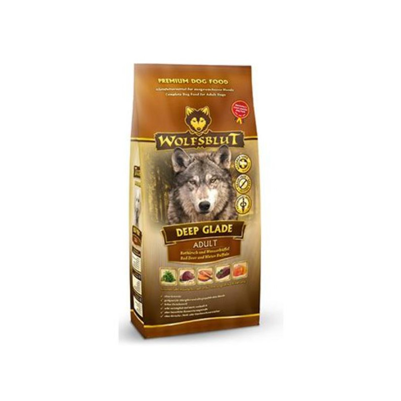 Vlci loví svou kořist od Skalistých hor Severní Ameriky, arktické tundry, hor a lesů Evropy až po pouště a stepi střední Asie. To jim dodává maso a vnitřnosti bohaté na živiny, ale také zeleninu, ovoce, bobule, kořeny a bylinky z obsahu žaludku kořisti. Obilí zde není zahrnuto. Vlk tak přijímá potřebné vitamíny, minerály, stopové prvky, enzymy a druhotné rostlinné látky. Vzhledem k tomu, že vlk je předkem všech psů, naše suché krmivo pro psy Wolfsblut je založeno na přirozených stravovacích návycích vlka. Obsahuje hodně masa nebo ryb v kombinaci se superpotravinami, které obsahují hodnotné ingredience – stejně jako v přírodě, bez obilovin. Náš výběr výjimečných druhů masa a superpotravin bohatých na živiny vychází z vlčích biotopů a jejich pestré stravy. Wolfsblut nabízí každému psovi druhově vhodnou a originální stravu a díky rozmanitosti odrůd si každý najde něco, co snese. Receptura suchého krmiva DEEP GLADE ADULT kombinuje výživu vlků s nejnovějšími vědeckými poznatky o správné výživě psů.