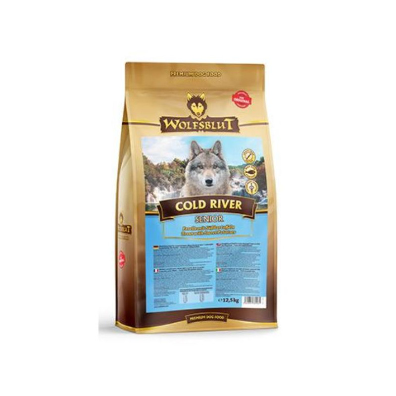 Vlci loví svou kořist od Skalistých hor Severní Ameriky, arktické tundry, hor, lesů a řek Evropy až po pouště a stepi střední Asie. To jim dodává maso a ryby a vnitřnosti bohaté na živiny, ale také zeleninu, ovoce, bobule, kořeny a bylinky prostřednictvím obsahu žaludku kořisti. Obilí zde není zahrnuto. Vlk tak přijímá potřebné vitamíny, minerály, stopové prvky, enzymy a druhotné rostlinné látky. Vzhledem k tomu, že vlk je předkem všech psů, naše suché krmivo pro psy Wolfsblut je založeno na přirozených stravovacích návycích vlka. Obsahuje hodně masa nebo ryb v kombinaci se superpotravinami, které obsahují hodnotné ingredience – stejně jako v přírodě, bez obilovin. Náš výběr výjimečných druhů masa a superpotravin bohatých na živiny vychází z vlčích biotopů a jejich pestré stravy. Wolfsblut nabízí každému psovi druhově vhodnou a originální stravu a díky rozmanitosti odrůd si každý najde něco, co snese. Receptura suchého krmiva COLD RIVER SENIOR kombinuje výživu vlků s nejnovějšími vědeckými poznatky o správné výživě psů.