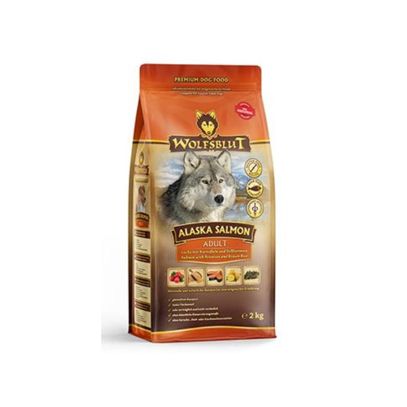 Vlci loví svou kořist od Skalistých hor Severní Ameriky, arktické tundry, hor a lesů Evropy až po pouště a stepi střední Asie. To jim dodává maso a vnitřnosti bohaté na živiny, ale také zeleninu, ovoce, bobule, kořeny a bylinky z obsahu žaludku kořisti. Obilí zde není zahrnuto. Vlk tak přijímá potřebné vitamíny, minerály, stopové prvky, enzymy a druhotné rostlinné látky. Vzhledem k tomu, že vlk je předkem všech psů, naše suché krmivo pro psy Wolfsblut je založeno na přirozených stravovacích návycích vlka. Obsahuje hodně masa nebo ryb v kombinaci se superpotravinami, které obsahují hodnotné ingredience – stejně jako v přírodě, bez obilovin. Náš výběr výjimečných druhů masa a superpotravin bohatých na živiny vychází z vlčích biotopů a jejich pestré stravy. Wolfsblut nabízí každému psovi druhově vhodnou a originální stravu a díky rozmanitosti odrůd si každý najde něco, co snese. Receptura suchého krmiva ALASKA SALMON kombinuje výživu vlků s nejnovějšími vědeckými poznatky o správné výživě psů.
