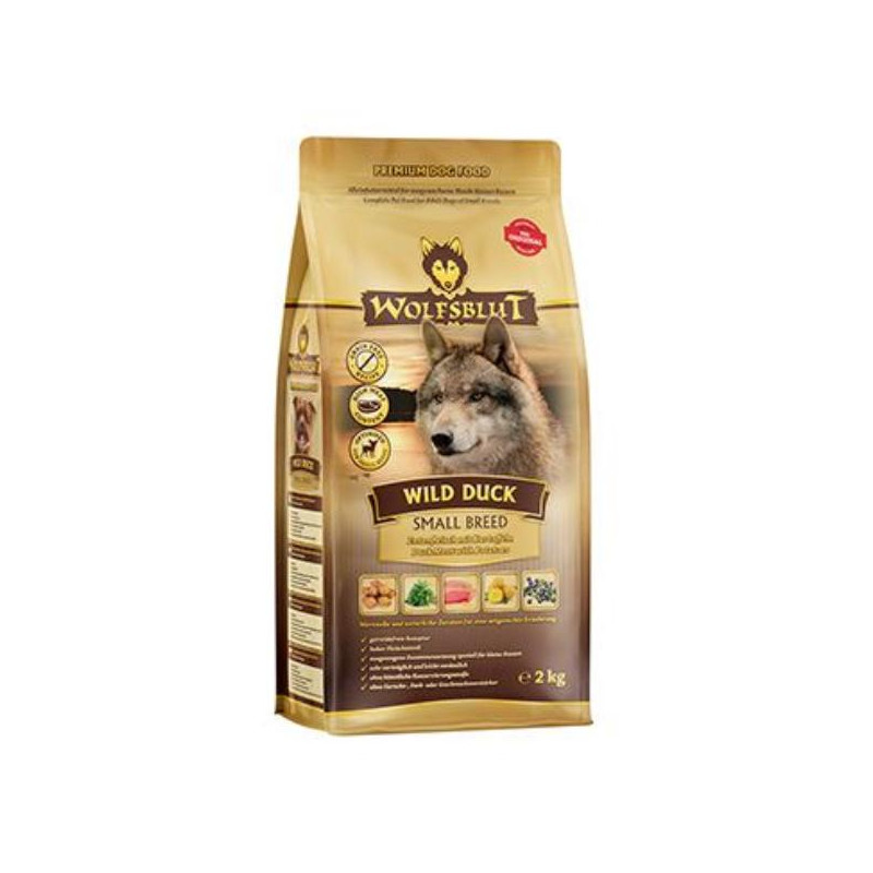 Vlci loví svou kořist od Skalistých hor Severní Ameriky, arktické tundry, hor a lesů Evropy až po pouště a stepi střední Asie. To jim dodává maso a vnitřnosti bohaté na živiny, ale také zeleninu, ovoce, bobule, kořeny a bylinky z obsahu žaludku kořisti. Obilí zde není zahrnuto. Vlk tak přijímá potřebné vitamíny, minerály, stopové prvky, enzymy a druhotné rostlinné látky. Vzhledem k tomu, že vlk je předkem všech psů, naše suché krmivo pro psy Wolfsblut je založeno na přirozených stravovacích návycích vlka. Obsahuje hodně masa nebo ryb v kombinaci se superpotravinami, které obsahují hodnotné ingredience – stejně jako v přírodě, bez obilovin. Náš výběr výjimečných druhů masa a superpotravin bohatých na živiny vychází z vlčích biotopů a jejich pestré stravy. Wolfsblut nabízí každému psovi druhově vhodnou a originální stravu a díky rozmanitosti odrůd si každý najde něco, co snese. Receptura na suché krmivo WILD DUCK SMALL BREED kombinuje výživu vlků s nejnovějšími vědeckými poznatky o správné výživě psů.