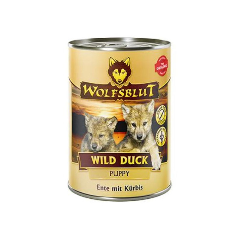 Vlci loví svou kořist od Skalistých hor Severní Ameriky, arktické tundry, hor a lesů Evropy až po pouště a stepi střední Asie. To jim dodává maso a vnitřnosti bohaté na živiny, ale také zeleninu, ovoce, bobule, kořeny a bylinky z obsahu žaludku kořisti. Obilí zde není zahrnuto. Vlk tak přijímá potřebné vitamíny, minerály, stopové prvky, enzymy a druhotné rostlinné látky. Vzhledem k tomu, že vlk je předkem všech psů, naše mokré krmivo Wolfsblut je založeno na přirozených stravovacích návycích vlka. Obsahuje hodně masa nebo ryb v kombinaci se superpotravinami, které obsahují hodnotné ingredience – stejně jako v přírodě, bez obilovin. Náš výběr výjimečných druhů masa a superpotravin bohatých na živiny vychází z vlčích biotopů a jejich pestré stravy. Wolfsblut nabízí každému psovi druhově vhodnou a originální stravu a díky rozmanitosti odrůd si každý najde něco, co snese. Jednotlivé složky potravy WILD DUCK PUPPY byly sestaveny společně s veterináři tak, aby vyhovovaly přirozenému chování vlka kořisti a poznatkům o holistické výživě štěňat. Mokré krmivo Wolfsblut je jedinečné a obsahuje mnoho superpotravin.