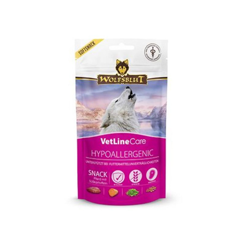 VetLine HYPOALLERGENIC Měkký hypoalergenní snack s koňským masem, lněným semínkem a řasami pro mazlíčky s intolerancemi. Jemné složení bez obilovin a zbytečných přísad šetří zažívání a potěší i mlsné jazýčky.
