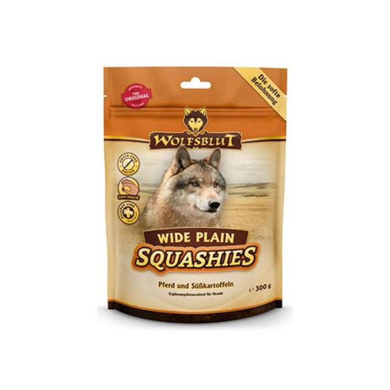 Wolfsblut Squashies jsou měkké psí svačiny bez obilovin a s vysokým obsahem masa. Dýně také neobsahují žádný průmyslově vyráběný cukr, žádná barviva, vůně, atraktanty, plniva či konzervanty a žádné chemické antioxidanty.