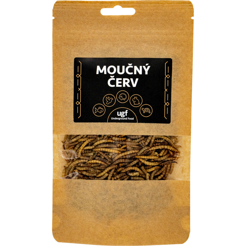 Larvy sušeného moučného červa jsou vhodným doplňkem stravy ptáků vč. drůbeže, ryb, ještěrek, leguánů, želv, žab, ježků, křečků, myší, potkanů a jiných malých savců, koček a psů.