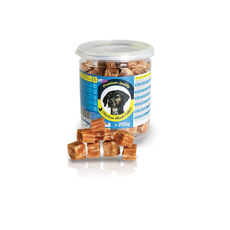 KIDDOG doplňkové krmivo, masová pochoutka pro psy, kuřecí masíčko v kostičce.