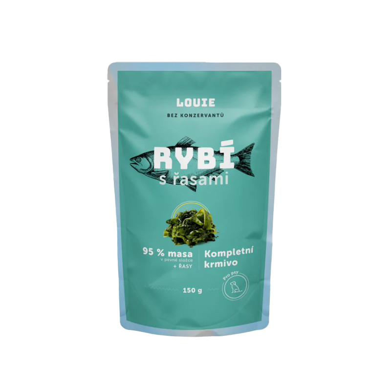 Kompletní krmivo bez obilnin pro psy každého věku i plemene, rybí s řasami. Nabízí Vašemu miláčkovi možnost stravy z kvalitního masa (95 % v pevné složce). Pro podporu peristaltiky střev a simulaci minoritní rostlinné složky v potravě psů slouží příměs řas. Krmivo neobsahuje žádné konzervanty, dochucovadla ani barviva, pouze 95 % masa, řasy, vitamíny a minerály.
